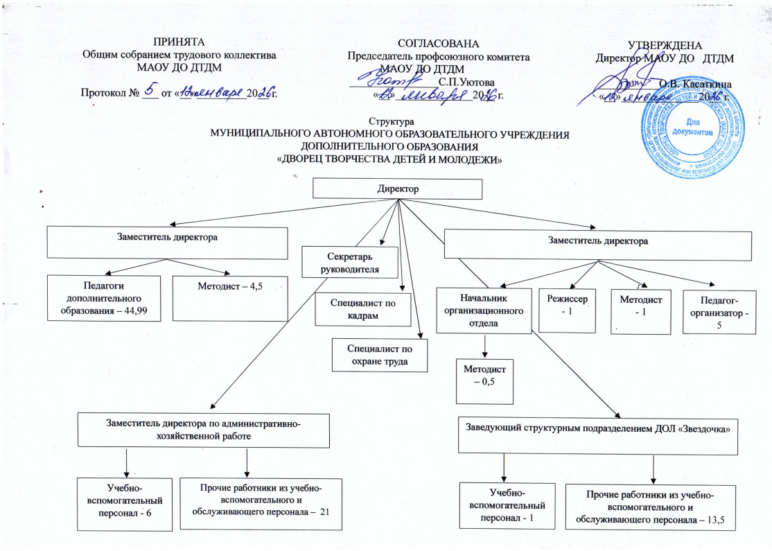 Управление МАОУ ДО ДТДМ осуществляется в соответствии с законодательством РФ на основе сочетания принципов единоначалия и коллегиальности, обеспечивающих государственно-общественный характер управления.